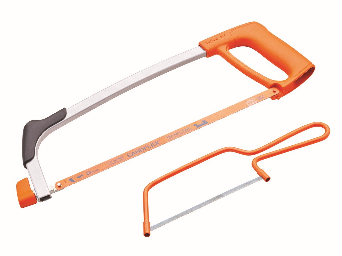 The XMS 300mm (12) Hacksaw & 150mm (6) Junior Hacksaw Twin Pack are each made by Bahco, neatly packaged in a box, an excellent pack deserving of your GKO interest. 300mm (12) Hacksaw The larger is supplied with the 300mm (12) Sandflex- 24 TPI bi-metal blade, the hacksaw is comfortable, easy to use, a lightweight hacksaw frame for all-round use. Alternative 90 degree blade mounting for flush cutting. The slim design improves access in confined spaces and makes storage easy, helped by the comfortable and special grip at the front provides better support for the guiding hand for superb performance. Reliable and shatterproof Sandflex- bi-metal blade 24 TPI for excellent cutting performance. 150mm (6) Junior Hacksaw The Junior version comes with steel material frame and steel wire handle. It is orange powder-coated and complete with 150 mm (6) 32 TPI metal cutting blade. The small hacksaw frame is for universal use.