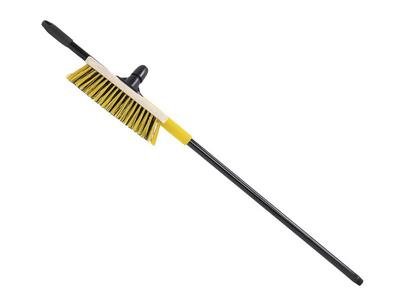 BULLDOZER Stiff Dual PET Broom with a wooden head. Its heavy-duty stiff black and yellow PET bristles have been designed for heavy outdoor sweeping applications including snow and ice. Can be used in both wet and dry conditions. Its metal handle is fitted with a cushioned neoprene grip that provides additional comfort whilst sweeping. A double lock bracket provides additional stability when in use. BULLDOZER brushes are engineered to tackle the toughest cleaning jobs, making them an essential addition to your kit. Whether you’re dealing with stubborn dirt or dead leaves, our heavy-duty brooms are designed to deliver outstanding performance. Made in UK.