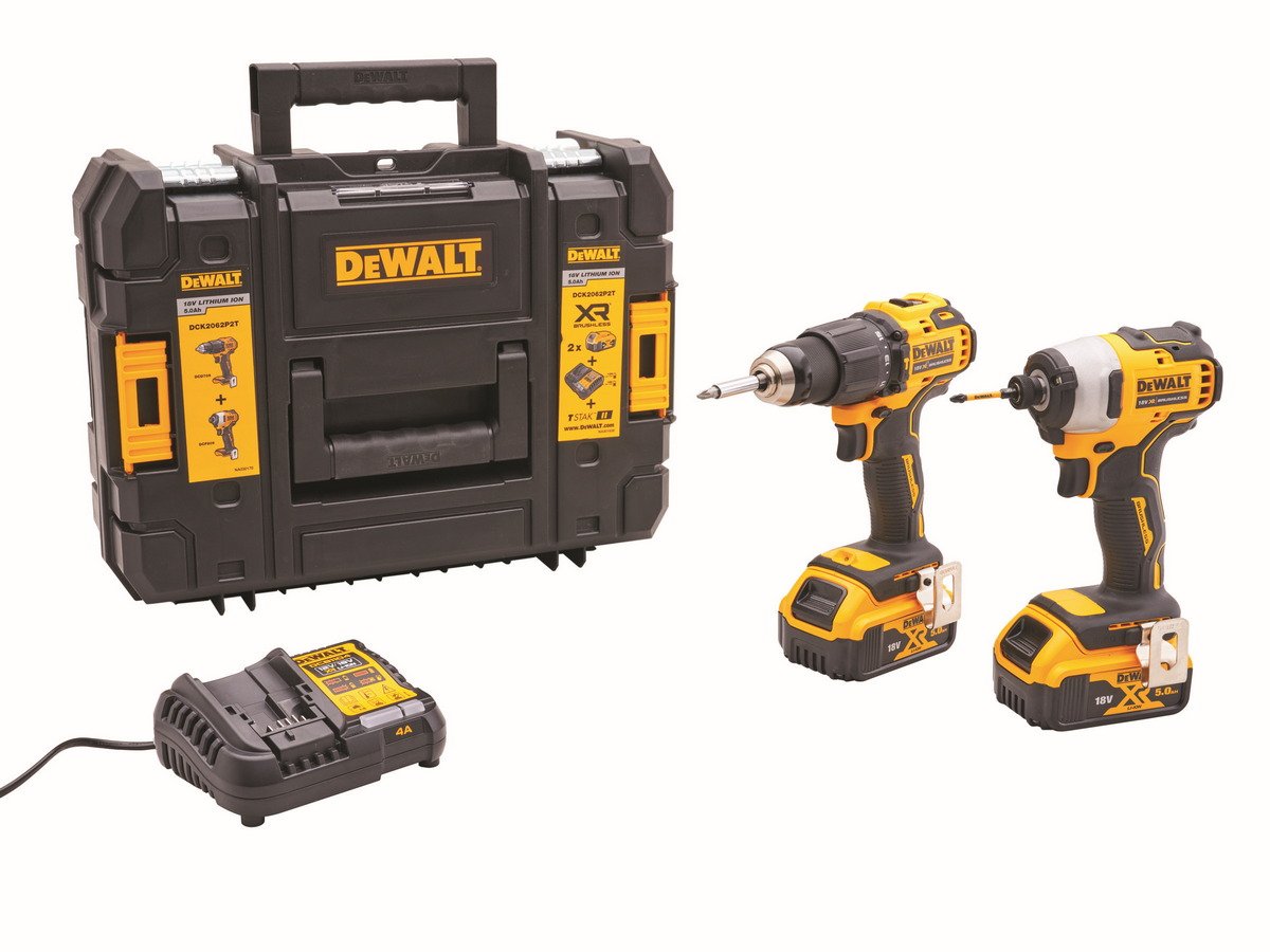 *Local Delivery / Collection Only* *Hazard Flag* The XMS 18V Combi & Impact Driver Twin Pack with 2 X 18V 5Ah Batteries, made by Dewalt Power Tools is an excellent GKO combi deal this Christmas. The Dewalt DCK2062P2T Twin Pack, contains the following: 1 x 18V DCD709 XR Compact Hammer Drill Driver with an efficient brushless motor delivering high performance, extends tool life and allows for a much shorter design. 15 position adjustable torque control provides consistent screw driving into a variety of materials. The 65Nm torque allows you to achieve tough applications. There is also a foot LED with delay feature for better workpiece illumination. Chuck: 13mm. No Load Speed: 0-450/0-1,650/min. Impact Rate: 0-7,650/0-28,050/min. Max Torque: 65Nm. Capacity: Wood 30mm, Steel 13mm, Masonry 13mm. 1 x 18V DCF809 XR Impact Driver with an efficient brushless motor delivering high performance, extends tool life and allows for a much shorter design. Delivers 190Nm of torque for the toughest of applications and extended runtime. Fitted with a Drop and Load bit holder for one-handed operation. Bit Holder: 6.35mm (1/4in). No Load Speed: 0-2,800/min. Impact Rate: 0-3,200/bpm. Max Torque: 190Nm. 1 x 10.8-18V DCB115 XR Multi-Voltage Charger has a compact size, making it easy to store and it is also wall mountable. A bright LED indicator communicates the battery charge status: charged, charging, power problem, and battery too hot or too cold conditions. It is capable of charging a 2.0Ah battery pack in 30 minutes. Voltage: 10.8/14.4/18V. Battery Chemistry: Li-ion. Charging Current: 4.0 A. Also supplied with: 2 x 18V 5.0Ah Batteries and 1 x TSTAK Carry Case.