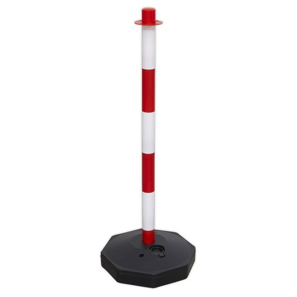 • Highly visible red/white post with base.