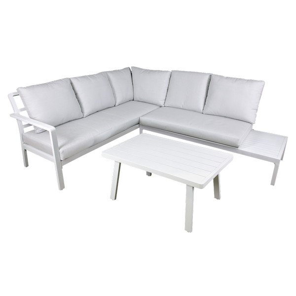 • Set includes one 2-seater sofa, one 3-seater sofa and an aluminium table.