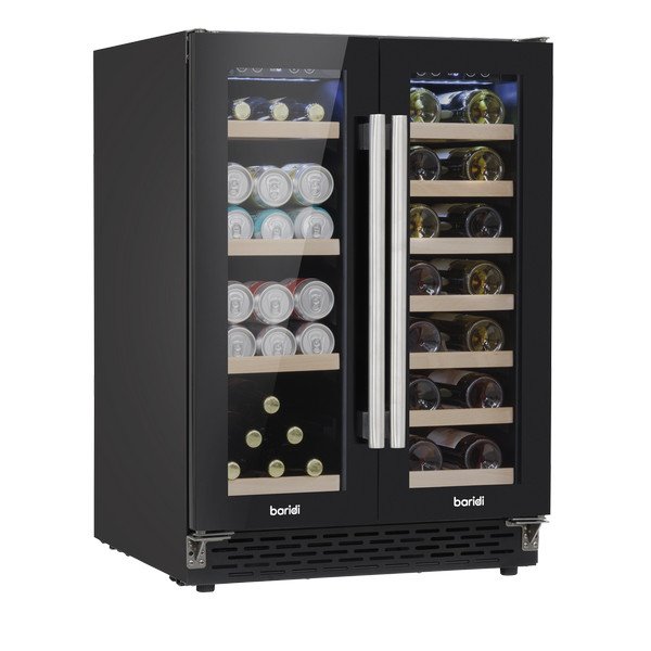 • Add style to your kitchen with this 60cm, dual zone wine cooler. The two-door design and 40 bottle capacity make a perfect addition to any kitchen.