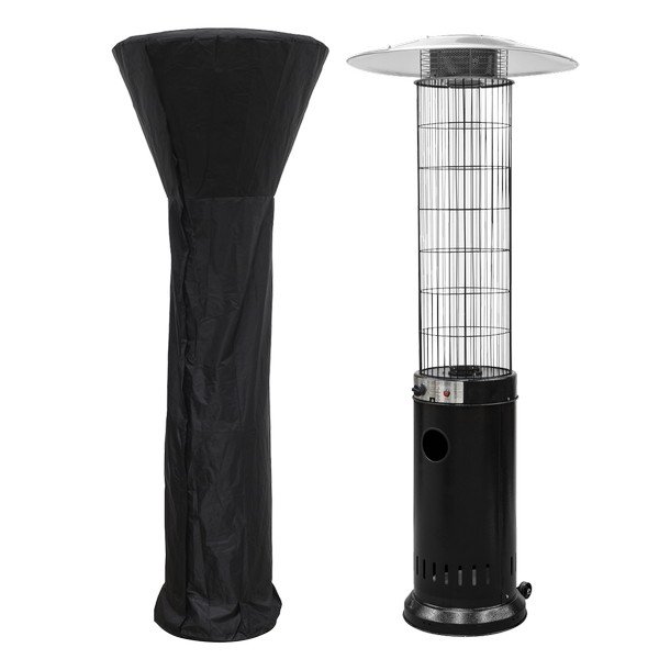 • Standing at 2.1m tall, when lit the heater produces a real flame encompassed by a glass tube and heats the surrounding area up to 8m², with a metal reflector ensuring heat is directed downwards and outwards.