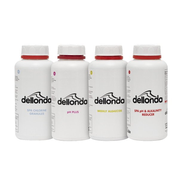 • 500g Chlorine Granules, 500g pH Increaser, 750g pH Reducer, 500ml Algaecide.