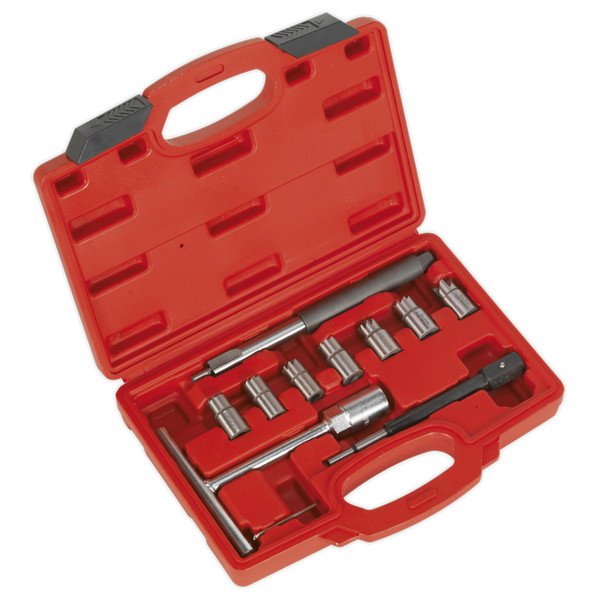 • Set of seven diesel injector seat cleaners, ream, centring pilot and T-handle.