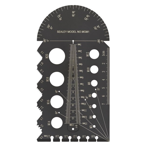 • Stainless steel metric multifunction thread/pitch identification gauge.