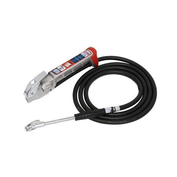 • Fitted with 2.5m hose with clip-on connector for compliance with safety regulations relating to inflation of commercial and agricultural vehicle tyres.