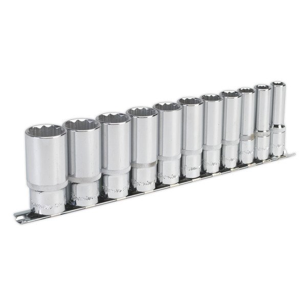 • Cold-forged Chrome Vanadium steel 12-point sockets, hardened and tempered for added strength.