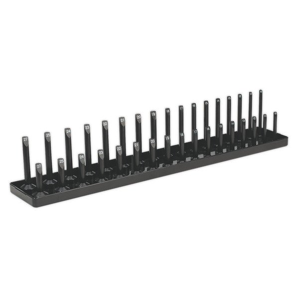 • Accommodates 17 standard and 17 deep, 1/2INSq drive sockets from 10 to 27mm.