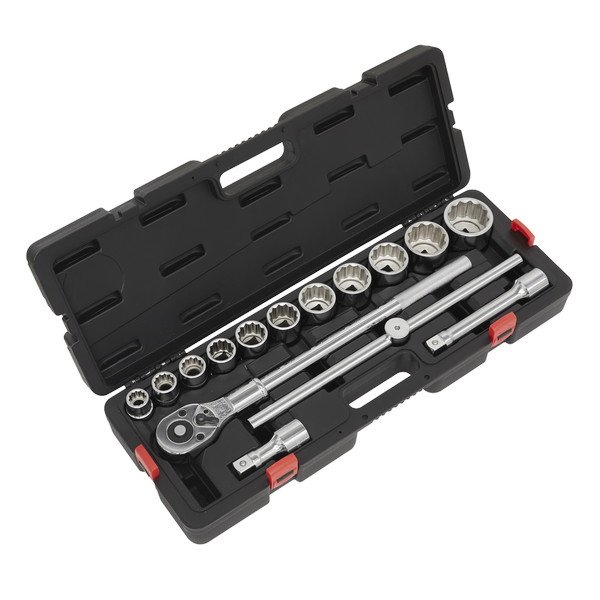 • Contents: Standard Sockets; 19, 22, 24, 27, 30, 32, 36, 38, 41, 46, 50mm, 500mm 3/4INSq Drive Quick Release Ratchet Wrench, Extension Bars; 100, 200mm, 450mm Sliding T-bar.