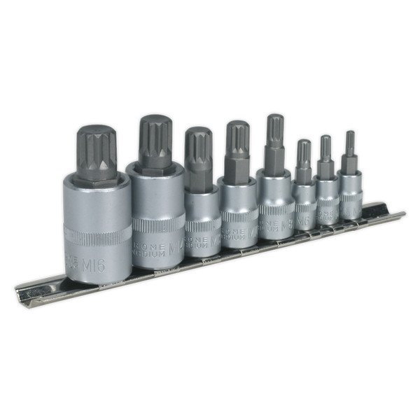 Sealey Premier Spline Socket Bit Set 1/4IN , 3/8IN & 1/2IN Sq Drive 8pc (5024209615594) AK6214