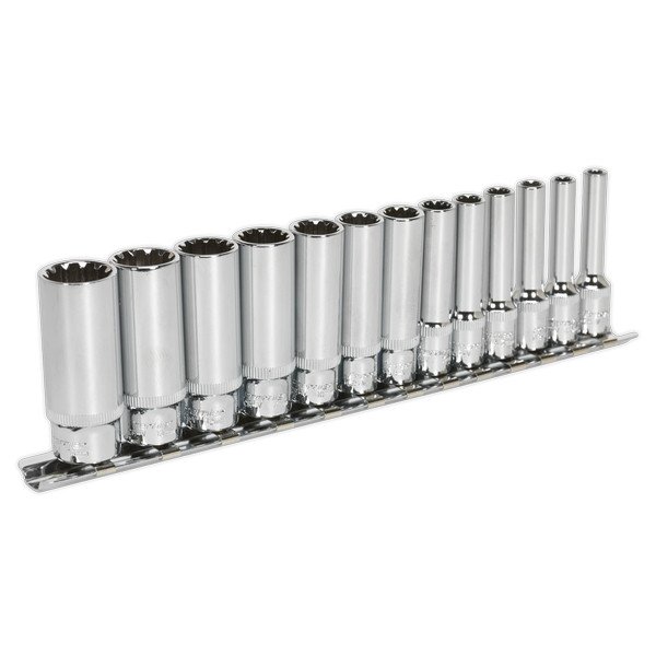 • Hardened and tempered Chrome Vanadium steel Total Drive® sockets with chrome/satin finish and knurled finger grip ring.