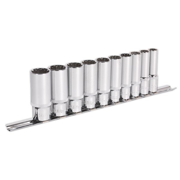 • Chrome Vanadium steel Total Drive® deep sockets, hardened and heat treated for strength with a fully polished mirror finish for resistance to corrosion.