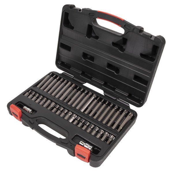 • Contents: TRX-Star* Bits; T20, T25, T30, T40, T45, T50, T55, T60 (1 each 30 and 75mm), Hex Bits; 4, 5, 6, 7, 8, 10, 12mm (1 each 30 and 75mm), Spline Bits; M5, M6, M8, M10, M12 (1 each 30 and 75mm), Drive Adaptors; 3/8INSq x 10mm Hex, 1/2INSq x 10mm Hex.