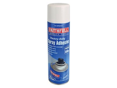 *Local Delivery / Collection Only* *Hazard Flag* A general purpose spray adhesive suitable for indoor and outdoor applications. Easy to use and an ideal substitute for double sided tape. Ideal for fixing floorings, upholstery, fabric, foam, polythene, foils, loose lay materials, cardboard and many other materials. Not suitable for use on vinyl or for mounting photographs. Test before use on new applications or unfamiliar materials to confirm suitability before use. Each 500ml can cover an area of 60 sq ft approximately (medium setting). Non-chlorinated and CFC free.