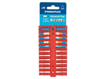 These Rawlplug- UNO- Plugs have the following specification: Colour: Red Size: 6 x 28mm Pack Size: 48