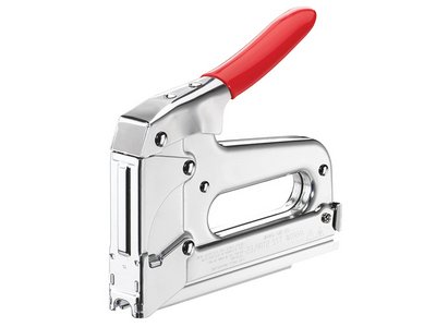 The Arrow T72 Large Insulated Staple Gun is the ideal tool for twin and earth cables, communication cables and alarm cables. It incorporates a grooved wire guide, enabling you to work at speed with accuracy. The T72s all steel construction, chrome finish and cushioned grip makes for a reliable, hard wearing stapler, and it has an easy squeeze doubler leverage-operation. Uses T59 6 x 6mm/8 x 8mm insulated staples.