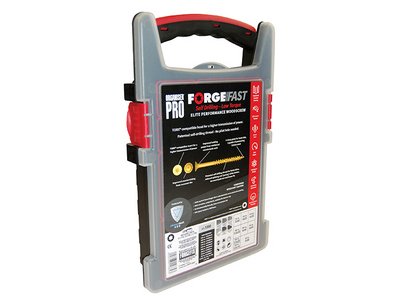 *** PRODUCT DISCONTINUED *** This ForgeFix ForgeFast Torx- Compatible Wood Screw Organiser contains a selection of the most popular sizes. With a universally accepted, TORX- compatible drive. Their recessed ribs provide improved countersinking and reduced surface dust, and their reinforced countersunk necks improve holding power. The patented drill and drive thread reduce splitting of the timber, reduced jacking and spinning of joined timber, increased pull-out and a firmer fix. A sharp point provides faster bite and is capable of piercing 0.8mm steel. With an Elementech 400 coating providing an anti-corrosive metal finish which lasts up to 6 times longer than standard zinc coatings. The coating is environmentally friendly and does not contain Cr6+. It is Salt Spray tested to 400 hours. Contains: 150 x ForgeFast TORX- Compatible Wood Screws ZY 3.5 x 16mm 100 x ForgeFast TORX- Compatible Wood Screws ZY 3.5 x 25mm 180 x ForgeFast TORX- Compatible Wood Screws ZY 3.5 x 30mm 130 x ForgeFast TORX- Compatible Wood Screws ZY 4.0 x 25mm 140 x ForgeFast TORX- Compatible Wood Screws ZY 4.0 x 30mm 100 x ForgeFast TORX- Compatible Wood Screws ZY 4.0 x 40mm 80 x ForgeFast TORX- Compatible Wood Screws ZY 4.0 x 50mm 55 x ForgeFast TORX- Compatible Wood Screws ZY 5.0 x 50mm 65 x ForgeFast TORX- Compatible Wood Screws ZY 5.0 x 80mm
