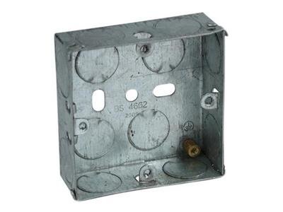 This Axiom Electrical Metal Socket Box has the following specification: Depth: 25mm Type: Single Socket Back Box Pack Quantity: 10