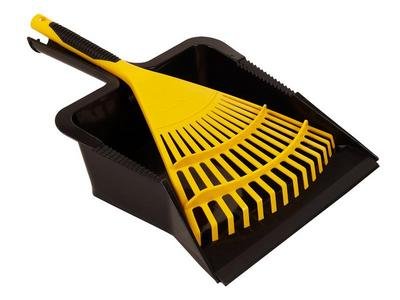 BULLDOZER Heavy-duty Dustpan and Large Hand Rake Set for clearing up debris around the garden. The large hand rake features a soft grip handle for additional comfort. The heavy-duty deep pan has been designed for the collection of large quantities of heavy garden debris and rubble. A rubber lip moulds to the floor for the collection of finer particles. Assembled in UK.