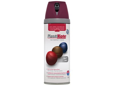 This PlastiKote Twist & Spray has the following specification: Finish: Matt Colour: Black Plum Size: 400ml