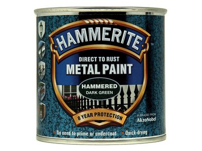 This Hammerite ;Direct to Rust Metal Paint ;has the following specification: Finish: Hammered. Colour: Dark Green. Size: 250ml.