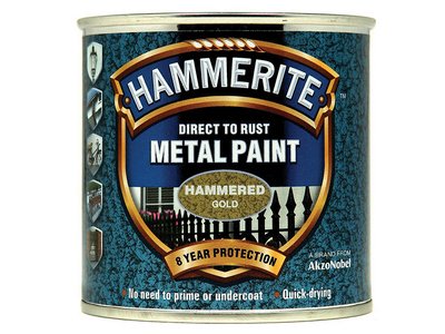 This Hammerite ;Direct to Rust Metal Paint ;has the following specification: Finish: Hammered. Colour: Gold. Size: 250ml.