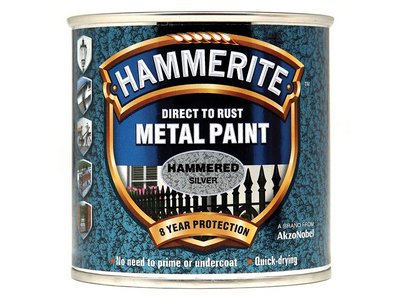 This Hammerite ;Direct to Rust Metal Paint ;has the following specification: Finish: Hammered. Colour: Silver. Size: 250ml.