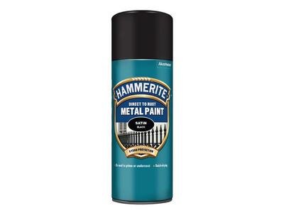 Hammerite Direct to Rust Smooth Finish Satin Black 400ml (5011867011080) HMMSFSBAERO *Restrictions – See Description*