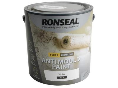 Ronseal RSLAMPWS25L 6 Year Anti Mould Paint comes in the following: Colour: White. Finish: Silk. Size: 2.5 litre. Application: Brush, Roller.