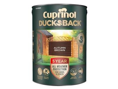 Cuprinol Ducksback 5 Year Waterproof for Sheds & Fences Autumn Brown 5 litre (5010212503003) CUPDBAB5L *Restrictions – See Description*