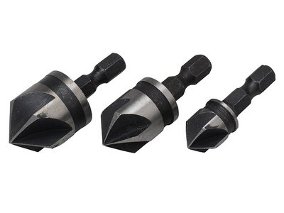 The BlueSpot Tools Countersink Bit Set contains the most popular sizes. Made from heat-treated carbon steel for strength and durability. Suitable for all hand and power drills with a 1/4in hex bit holder. Sizes: 12mm, 16mm and 19mm.