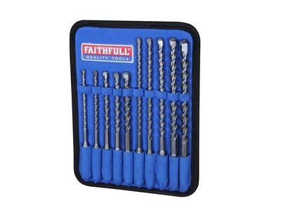 10 Piece Faithfull SDS Plus Drill Bit Set supplied in a fabric storage wallet. Contains the following sizes: 5.5 x 160mm, 6 x 160mm, 6 x 210mm, 7 x 160mm, 7 x 210mm, 8 x 160mm, 8 x 210mm, 10 x 160mm, 10 x 210mm and 12 x 210mm.