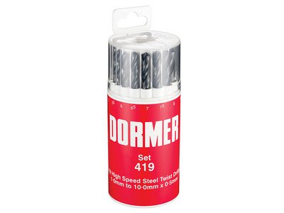 Dormer A191 No.419 Metric HSS Drill Set of 19 1.0-10.0 x 0.5mm (7320760030615) DORSET419