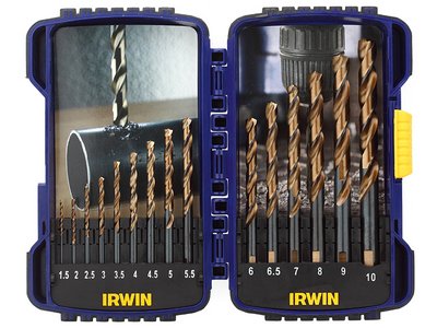 *** PRODUCT DISCONTINUED *** This Irwin 10503992 Turbomax HSS Drill bit set with jet point tips. They are designed primarily for high performance drilling in sheet metal, however they also perform well in all types of wood and plastic and also stainless steel. They have a 100° tip for a faster start and precise centering and guidance with a 140° cutting shoulder for a smooth finish that will drill perfectly round holes with clean exit holes and will not bind in multiple layers of thin material. Set of 15 HSS Turbomax Drill bits – 1.5, 2, 2.5, 3, 3.5, 4, 4.5, 5, 5.5, 6, 6.5, 7, 8, 9 and 10mm.