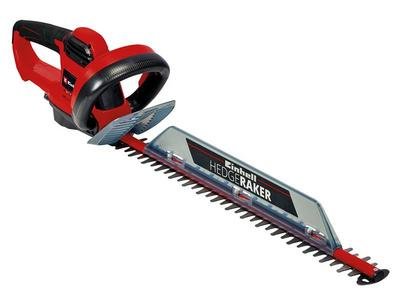 The Einhell GC-EH 6055/1 Electric Hedge Trimmer makes light work of trimming hedges, shrubs and bushes. The cutters are made from laser-cut, diamond-ground steel for precision and durability. For a long service life, the hedge trimmer is equipped with metal gearing. Equipped with a comfortable soft grip handle, plus an additional handle provides optimum ergonomics and a secure hold, whatever the cutting angle. For added safety, there is a large hand guard, two-handed ON/OFF safety switch, strain-relief clip and an aluminium cover over the cutters. Convenient removal of the cuttings from the top of the hedge when trimming hedges is ensured thanks to the practical cuttings collector. Specification Input Power: 600W Strokes at No Load: 1,400/min. Blade Length: 55cm, 26mm gap Cutting Length: 55cm Weight: 3.47kg