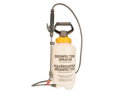 *DISCONTINUED PRODUCT* The Hozelock Disinfection Pressure Sprayer is a high-quality, convenient sprayer designed for the safe use of diluted liquid bleach (2-5% max. or 100-250ml max. per 5L of water). The large tank opening allows for easy filling, mixing and emptying, whilst the translucent, graduated bottle provides accurate chemical dosing. It has a flat fan nozzle that is ideal for treating large areas. It comes with a 30cm chemical-resistant fibreglass lance and an ergonomic trigger handle. Other features include an integrated filter and a 3 bar pressure valve. The total usable capacity of this sprayer is 5 litres, DO NOT exceed this amount.