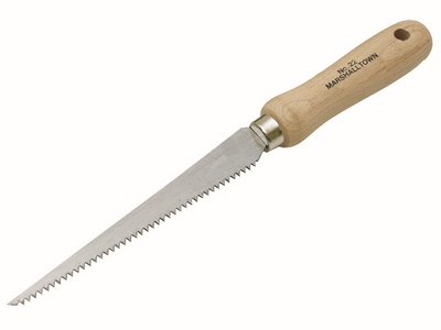 M22 Drywall Utility Saw has a heavy gauge blade securely attached to a contoured hardwood handle with ferrule. Cuts wallboard, masonite, plywood and wood. Size: 150mm (6in).