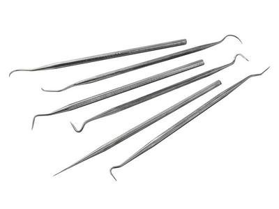The Faithfull useful set of picks and hooks manufactured from stainless steel. The set contains 3 single end picks and 3 double end hooks. Suitable for pin or clip picking and the removal of seals and O-rings and many other applications. Approximate lengths 140mm – 165mm. Supplied in a plastic pouch.