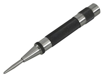 Rugged steel centre punch has a mechanism which automatically strikes a blow when downward pressure is applied. Force of blow is regulated by the adjustable knurled cap. No hammer is required. Punch length: 125mm (5 in). Punch diameter: 14mm (9/16 in). Spare points also available STR18APOINT