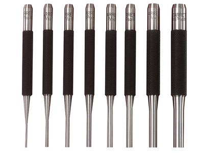 1 x Starrett S565PC Pin Punch Set 8 Piece Sizes: 1.5mm (1/16in), 2.5mm (3/32in), 3mm (1/8in), 4mm (5/32in), 5mm (3/16in), 5.5mm (7/32in), 6mm (1/4in) and 8mm (5/16in).