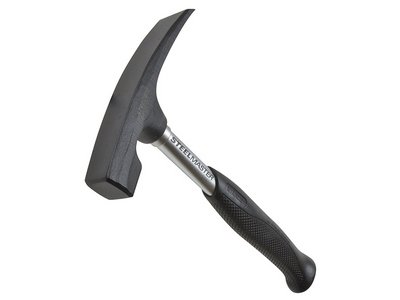 A Brick Hammer with a tubular steel shaft, light but strong. The soft grip ergonomic handle is non-slip and comfortable. The head is manufactured from heat-treated carbon steel and has a sharp chisel edge for cutting bricks and slate. Weight 500g (18oz).
