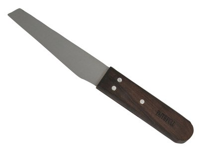 Shoe knives are generally used for cutting leather but can be used for many other tasks. The flexible stainless steel blade is riveted to a hardwood handle. Blade Length: 112mm (4.3/8in).