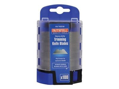 Faithfull Heavy-Duty Trimming Knife Blades (Box 100) in safe storage dispenser (5023969212944) FAITKB100