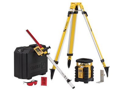 The Stabila LAR 350 Rotation Laser is a fully automatic motor-driven rotation laser for horizontal and vertical applications, as well as manual inclination in 2 axes. With innovative motion control for quick, reliable and convenient laser operation via the supplied remote control. It has several useful functions, including: Dual slope inclination function, which allows for controlled inclination setting of up to 5 degree on 2 axes; Section mode enables you to set up a working area, meaning that the laser beam is only emitted in a defined area; Manual alignment function provides a pivoting axis in vertical operation; The integrated LED assist system allows for easy operation and safety in the workplace. It alerts the user at various points, for example, which axis is currently tilted or is being tilted. The body of the laser is IP65 rated, dust and waterproof. It also incorporates the patented STABILA PROTECTOR system, which offers maximum protection, even when the laser is dropped from a tripod at a height of up to 1.80m. Supplied with the Stabila REC300 Receiver which has 2 displays: one each on the front and back with digital display of the reference deviation in mm, inches in (fractions) and ft. Allowing you to read the deviation from the reference height directly. Acoustic guidance with selectable volume and a series of symbols will indicate your distance from the reference height and whether you are too high or low. Its loud signal can be heard even with loud background noise. Also supplied with: 1 x RC-LAR 350 Remote Control, 1 x BST-S Construction Tripod, 1 x NL Levelling Rod, 1 x 90 degree Angle Rail, 1 x Laser Goggles, 1 x Target Plate, 1 x Carrying Case, 2 x D 1.5V Batteries and 4 x AA 1.5V Batteries. Specification: Levelling Accuracy: ±0.10mm/m Range: 800m Self-Levelling Range: ±5 degree Laser Class: 2 Operating Life: 80 hours Power: 2 x 1.5V D Cell batteries (supplied) Protection Class: IP65 Tripod Connection: 5/8in
