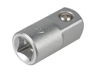Socket converter 1/4in female to 3/8in male. Made from chrome vanadium steel with a satin finish. Overall Length: 25mm.