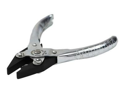 Maun Flat Nose Pliers with smooth jaws for a firm grip without damaging delicate pieces. Perfect for working with jewellery and manipulating or straightening soft wire. Jaws move in parallel throughout use and grip securely along their whole length. They are able to manipulate, straighten and remove kinks in wire. Built to last, with a robust construction and rust-proof finish. The jaws have been case hardened to HRC 57 for added durability. Wire can also be threaded down throat of plier. Zinc-plated handles with detailing provide added grip. A workbench essential, for use with soft metals and other delicate materials. Ideal for: jewellery makers, manufacturers of delicate pieces, hobbyists and craft workers. Made in England. Conforms to BS 3087-7:1996, ISO 5747:1995. Comes with a standard 12 months warranty. Register your tool to extend this to 2 years. Specification: Overall Length: 140mm Jaw Opening: 10mm Jaw Width: 8mm Usable Jaw Length: 28mm