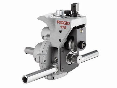 The RIDGID 975 Roll Groover acts as 2 tools in one. It can mount onto the 300 Power Drive for machine powered roll grooving, but is also designed to manually roll groove in-place pipe. The 975 features patented auto tracking technology for significantly easier grooving. The AutoTrack gauge keeps the pipe automatically engaged to the groover throughout the grooving process. In addition, a depth setting gauge enables quicker, repeatable set-up. When manually grooving, the 975s higher gear reduction means less hand force is required, which is especially helpful for overhead roll grooving. The 975 roll groover has a tough, ductile iron construction that can absorb jobsite abuse and which provides a long working life. Capacity: Sch. 10 Steel and Stainless Steel Pipe: 1.1/4 – 6in. K, L, M, DWV Copper: 2- 8in. Sch. 40 PVC: 1.1/4 – 6in. Operation: Feed Screw with 1/2in Ratchet Wrench (included). Weight: 10.43kg.
