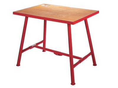 This heavy-duty workbench from Ridgid has a tough wood working surface which has been specially treated to resist water and dust. The legs are of tubular construction and designed to carry heavy loads. This Workbench is simple to erect and dismantle and easy to transport. Size: 107 x 75cm. Table thickness: 30mm. Height: 84cm.