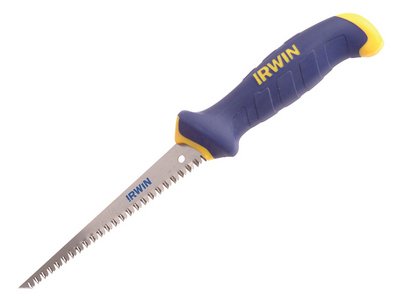 Irwin Jab Saw 165mm has a hardened and tempered blade with aggressive tooth design for improved cutting performance and greater removal of waste material. Sharpened tip for easy punching through drywall and a ProTouch (TM) soft-grip handle for durability and comfort. Blade Length: 165mm (6.1/2in). Teeth: 8 tpi.